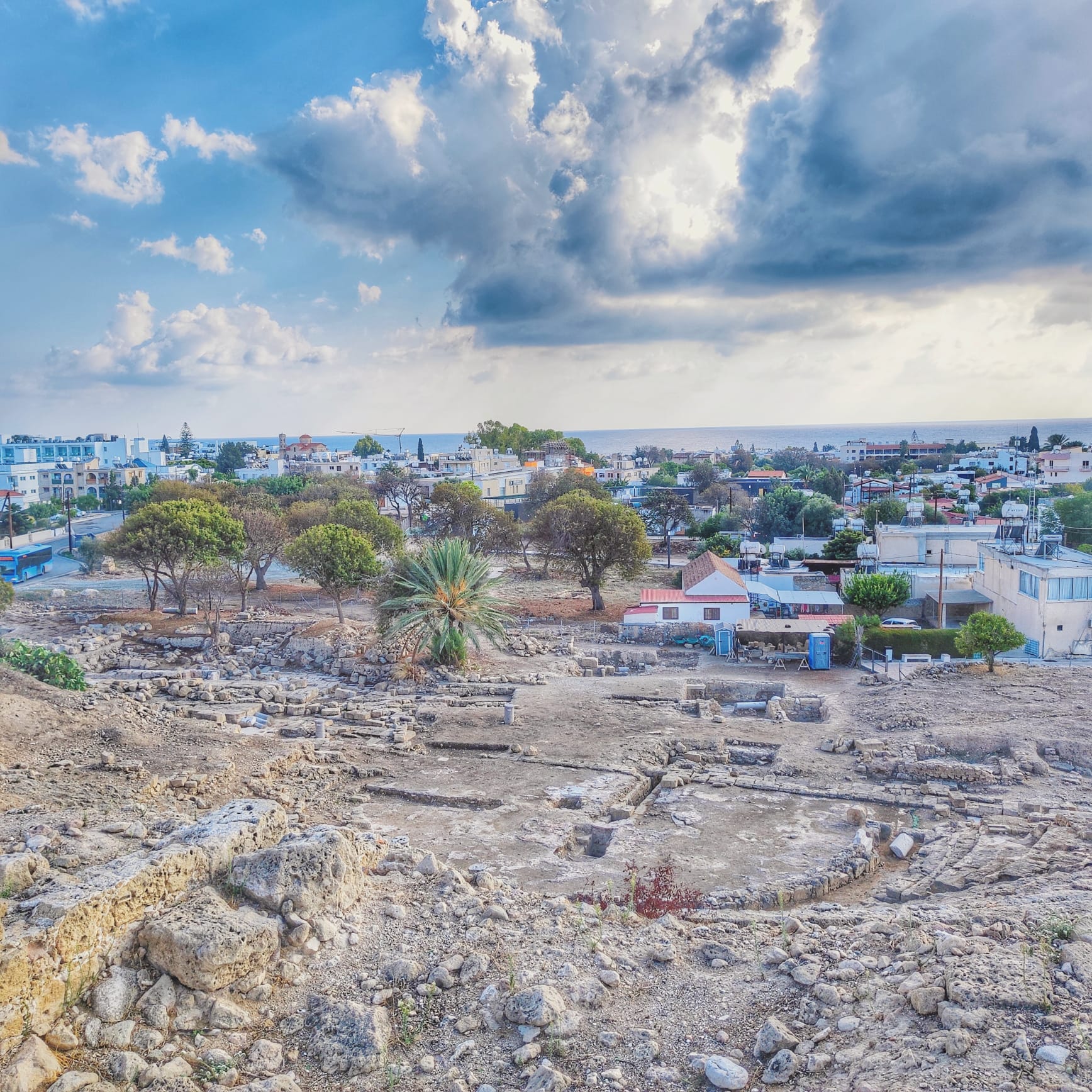Alle spalle del mare si stende la Paphos moderna nella quale qua e là però, di tanto in tanto, saltano fuori monumenti e aree archeologiche più o meno piccole che ci raccontano quanto la città attuale sia cresciuta e si sia sviluppata su se stessa, inglobando spesso le strutture più antiche, usandole come fondazioni per gli edifici moderni.