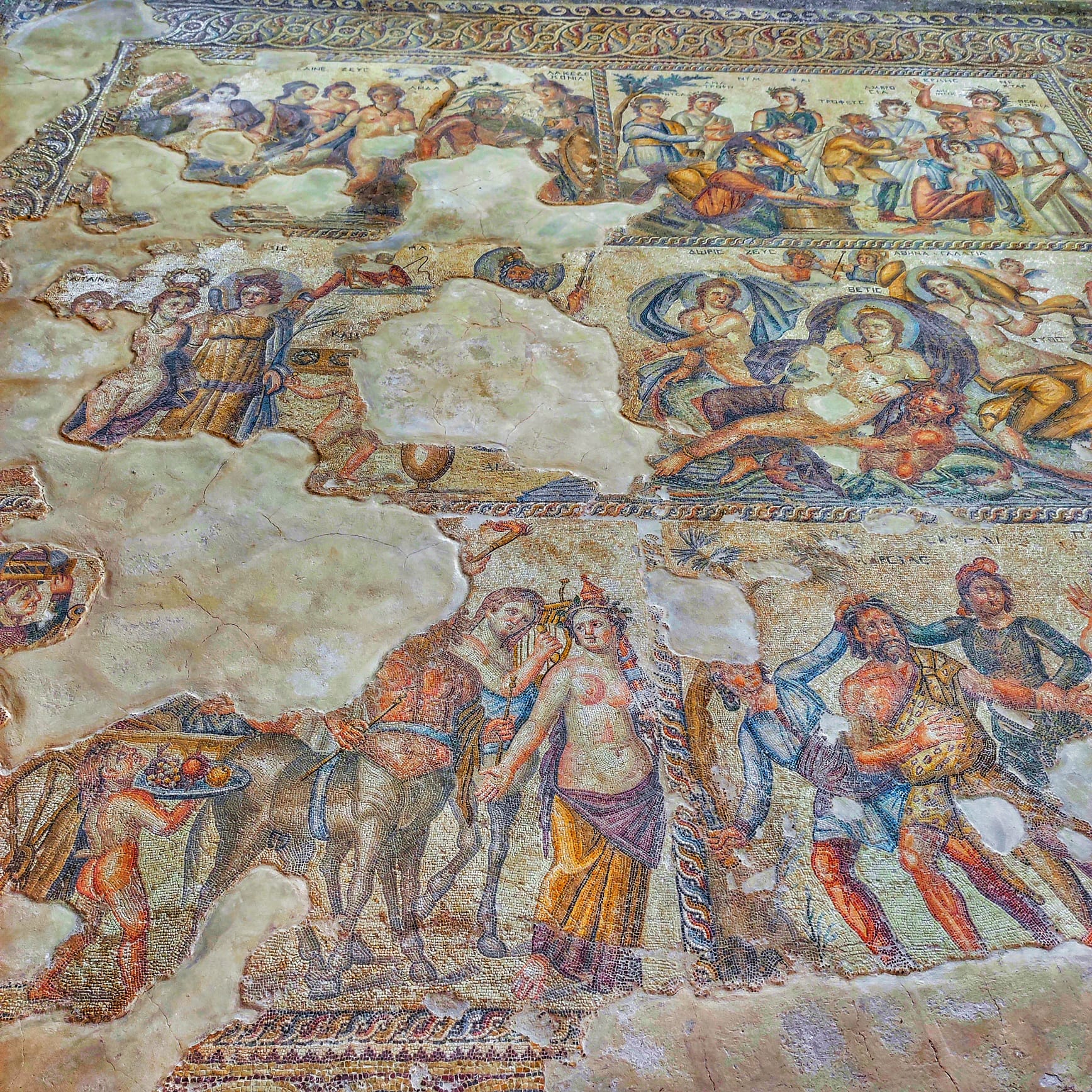 Nea Paphos è il nome della città ellenistica e poi romana di Paphos, e si distingue da una Palaia Paphos, più antica, completamente cancellata dalla città greca e poi romana. Io ho visitato solo la parte romana imperiale, consistente in una serie di domus e una villa, tutte caratterizzate da straordinari pavimenti a mosaico che raccontano dell’estrema ricchezza, ma anche dell’elevato livello culturale dei proprietari.