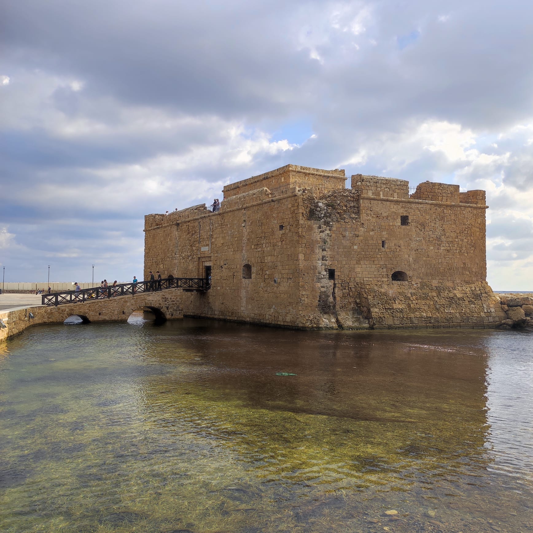 La passeggiata sul mare è piuttosto lunga; superata la serie degli hotel luxury inizia la serie dei locali/ristoranti più o meno turistici, che si dispongono intorno al porto di Paphos. Un porto non particolarmente grande, dominato oggi come allora dal Castello di Paphos: una fortificazione che mi ha ricordato Le Castella di Capo Rizzuto in Calabria, ma in proporzioni minori. Il Castello, che risale alla fine del XIV secolo, è visitabile, dall’alto si domina la vista sul porto, sulla baia e su Kato Paphos, la città vecchia, se così la possiamo definire.