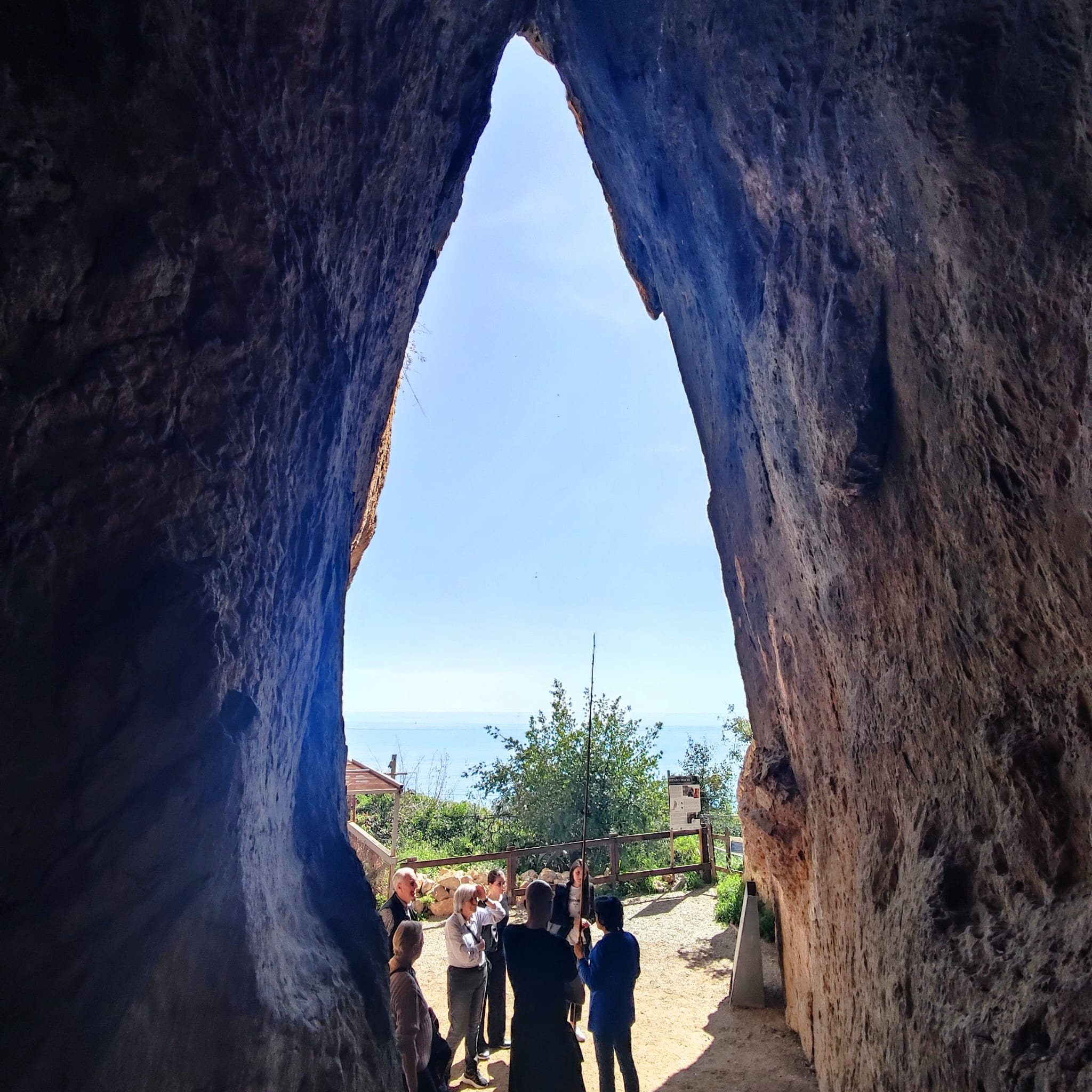 A seguire, si può vedere, senza potervi accedere, l’imbocco della Grotta della Barma Grande. Invece si può entrare, con visita accompagnata a orari specifici, la Grotta del Caviglione: è un’alta fenditura nella falesia, che è stata scavata per tutti i livelli preistorici fino allo sterile, sul quale camminiamo noi oggi. In alto sulla parete, brunita dai focolari preistorici qui accesi, si distingue – con difficoltà, certo, ma il personale di vigilanza lo indica con una lunga asta – il cavallo graffito. E riuscire a distinguerlo, tra le crepe naturali della roccia è una grande emozione: ci riporta a 40mila anni fa, quando un nostro antenato decise di rappresentare proprio quell’animale caricandolo di chissà quale valore simbolico o magari religioso. Non possiamo saperlo, ma è tutto molto molto suggestivo.
