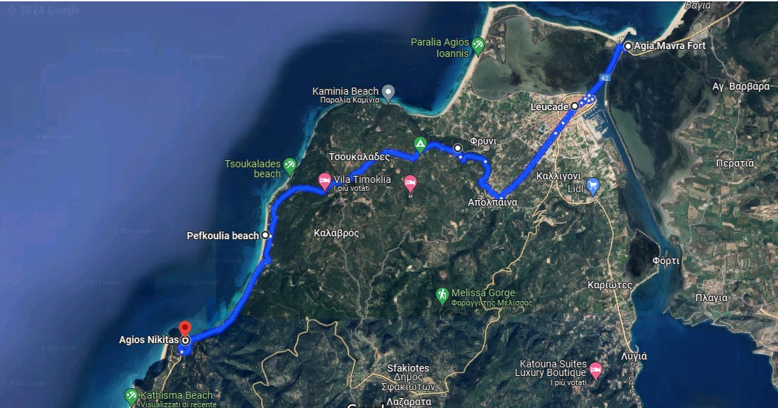 Itinerario Nord: Lefkada, Agia Maura, Faneromeni, Pefkoulia, Agios Nikitas
