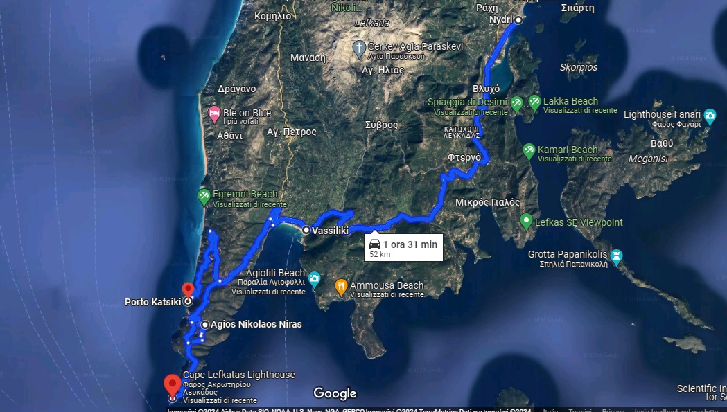 Itinerario Sud: Nidri, Vassiliki, Agios Nikolaos Niras, Cape Lefkatas, Porto Katsiki