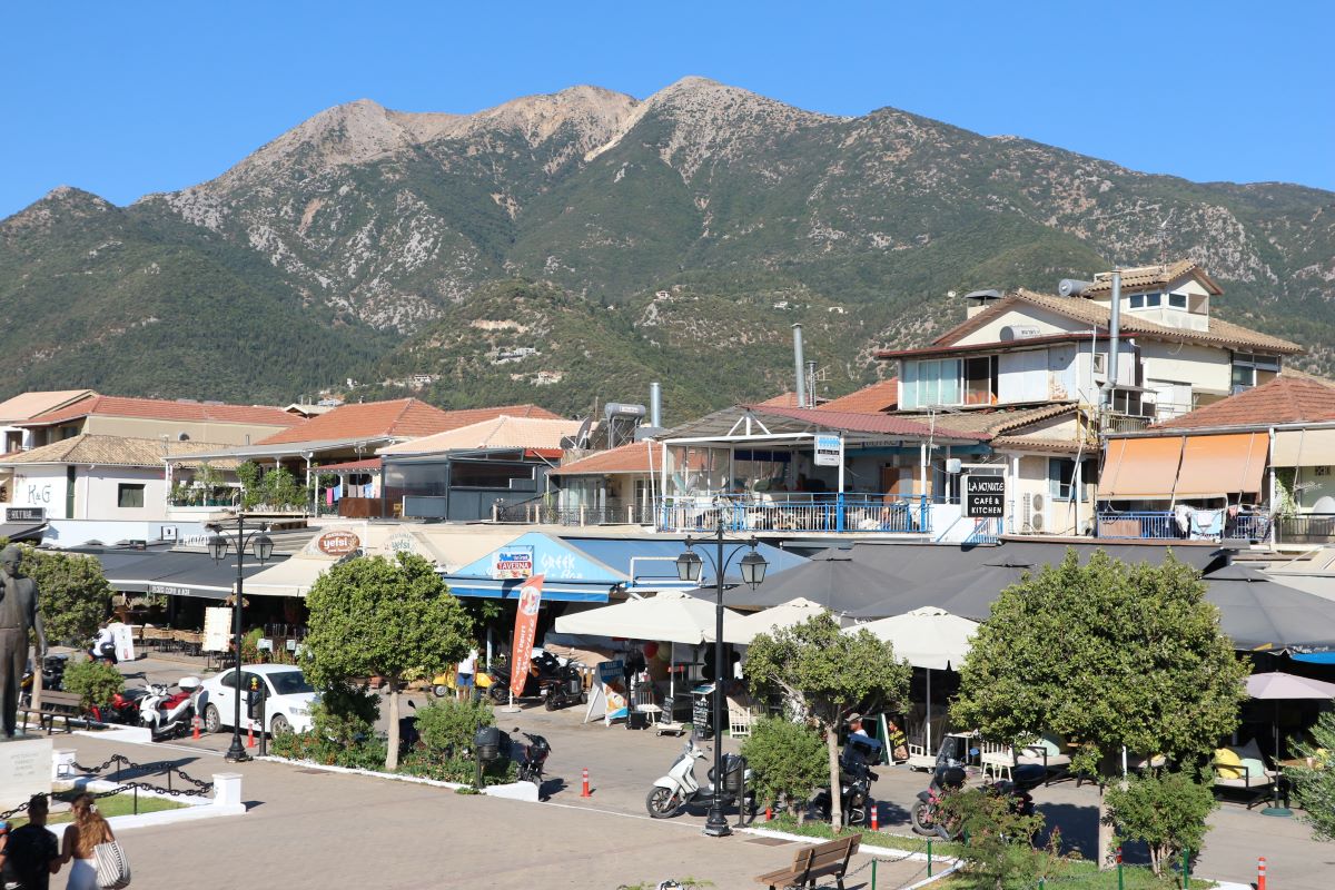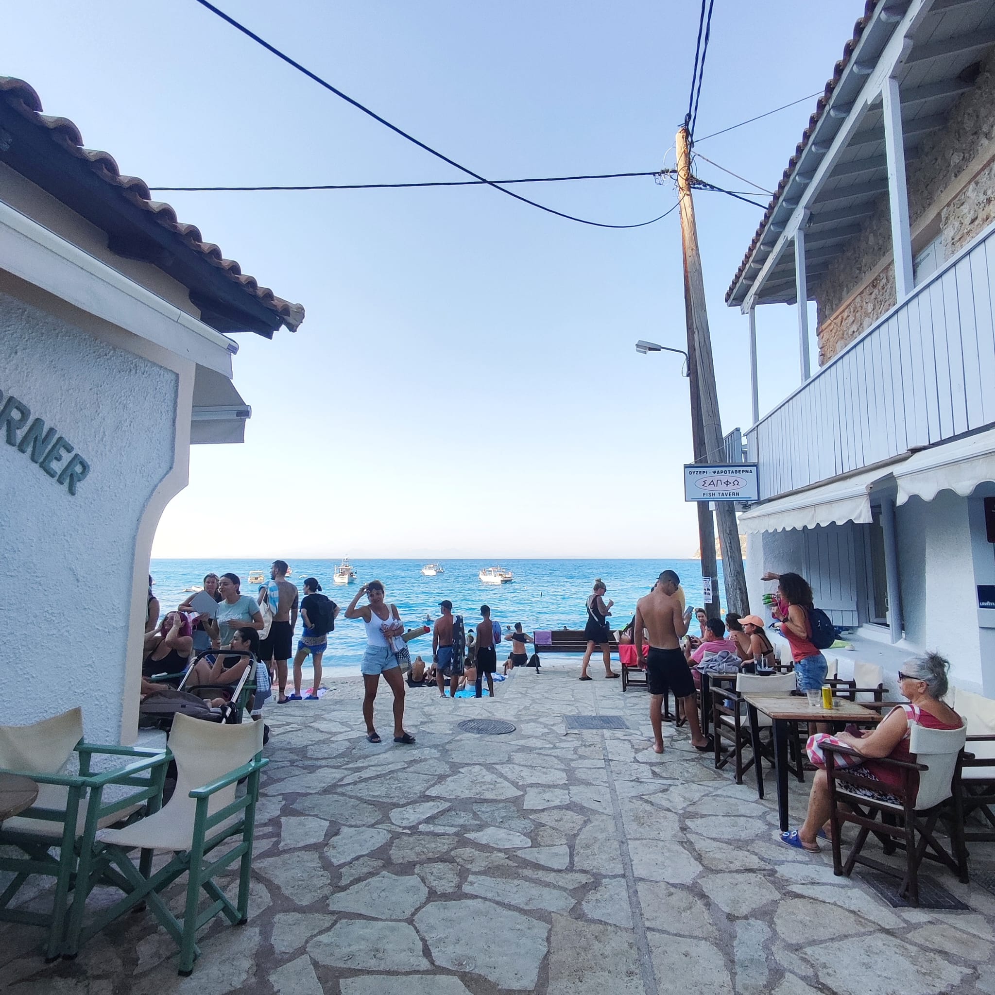 Ecco, mentre è facile trovare parcheggio a Pefkoulia, più complesso è riuscire a parcheggiare vicino ad Agios Nikitas. Ma se ci si arriva la sera, quando il sole tramonta e il grosso della gente se ne va dalla spiaggia, forse qualche speranza di parcheggiare c’è.