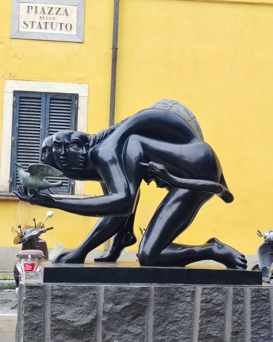 Di fronte a tanta esibizione d’arte anche internazionale, si potrebbe correre il rischio che Pietrasanta diventi una cittadina fighetta, per molti (collezionisti d’arte) ma non per tutti. Ebbene, questo timore mi è stato fugato nel momento stesso in cui sono entrata in città. Allora ho capito di essere entrata all’interno di una sobria e composta opera d’arte, e mi sono compiaciuta.