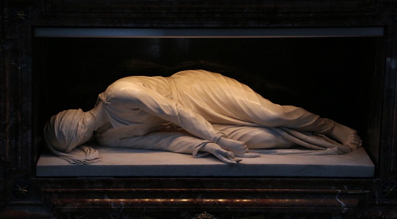 Nel 1599, in vista di restauri per il grande Giubileo del 1600, fu individuato il sarcofago contenente le spoglie mortali della Santa e fu aperto: il corpo della martire era ancora intatto, un vero e proprio miracolo che si decise di immortalare incaricando il giovane scultore Stefano Maderno di realizzare una statua che raffigurasse Cecilia esattamente come era stata rinvenuta.