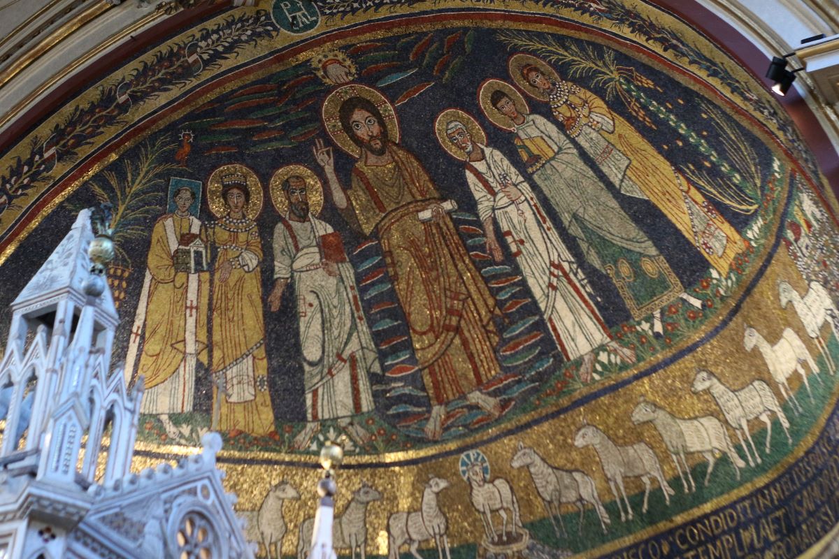 A Trastevere, poco distante dal complesso di San Michele a Ripa, sorge la basilica di Santa Cecilia in Trastevere. La tradizione vuole che la chiesa, in origine paleocristiana, rivista poi in forme rinascimentali, sorga sulla domus in cui Cecilia era nata e cresciuta. In effetti al di sotto della basilica si trovano i resti di una domus di età imperiale che probabilmente fin da subito fu trasformata in domus ecclesiae, quindi in aula di culto in onore della martire, da cui poi sarebbe sorta la basilica paleocristiana nel momento in cui furono traslate qui le spoglie mortali riportate dalle catacombe di San Callisto. Della basilica paleocristiana sopravvive l’abside mosaicato, con Cristo tra santi e il papa e un fregio sottostante con l’Agnello di Dio in mezzo alle pecore che simboleggiano gli Apostoli.