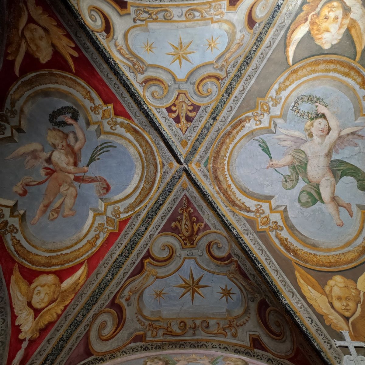 Nel Seicento e poi nel Settecento la chiesa viene ulteriormente ampliata e abbellita. Le navate laterali presentano le volte affrescate con puttini tra ghirlande di fiori: un insieme molto elegante che conferisce ariosità e musicalità al tutto. La facciata con l’ampio cortile antistante l’ingresso si deve a una sistemazione ottocentesca.