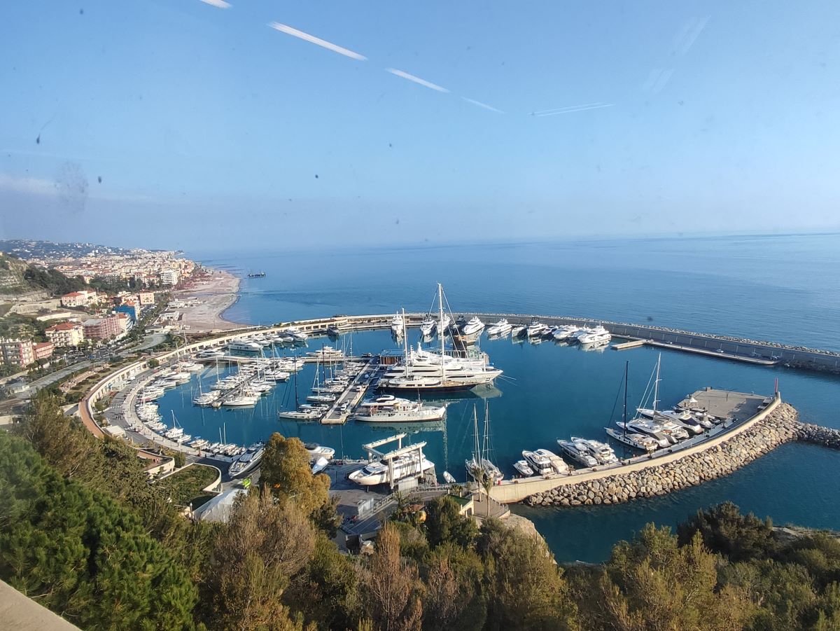 Qui mi piace spendere due parole, però, sul porto turistico di Ventimiglia: la forma attira subito l’attenzione: è una circonferenza artificiale quasi perfetta. Un disegno architettonico davvero interessante, che crea una baia artificiale molto racchiusa in un punto della costa che in realtà non è così chiuso, ma che effettivamente poco si presta ad approdo naturale, sia per la vicinanza alla foce del fiume Roya, che porta continui detriti alluvionali che andrebbero a insabbiare, sia per la vicinanza con la falesia, che al contrario è rischiosa per la navigazione se vi sono venti contrari.
