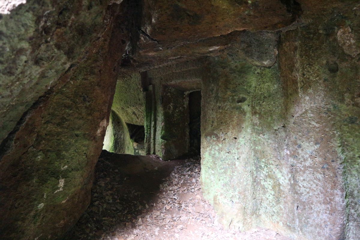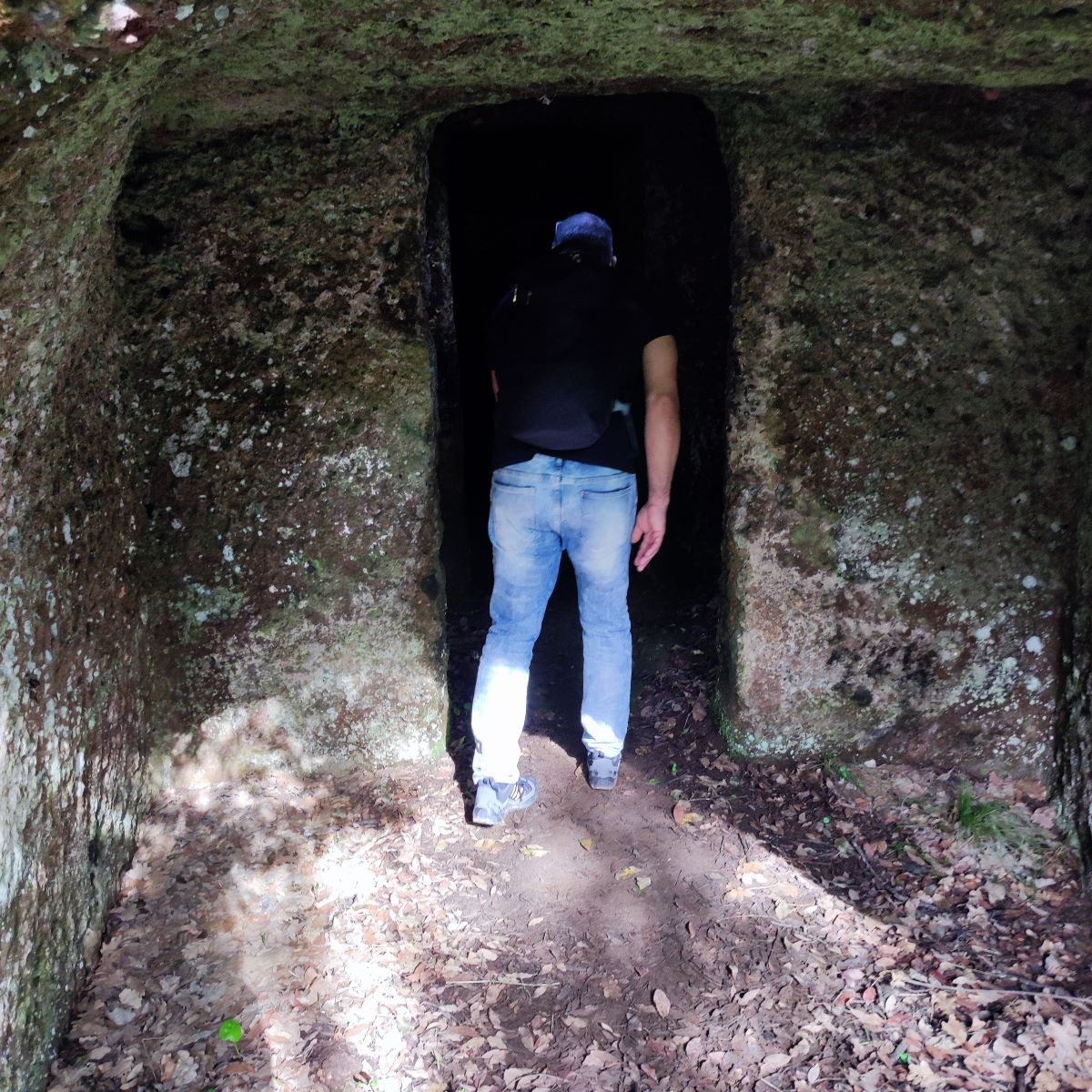 La cosa davvero divertente, e allo stesso tempo estremamente suggestiva, di tutto questo percorso, sia lungo la via Amerina nel tratto conservato della necropoli di Cava degli Zucchi, che in questo tratto nel bosco, è che le tombe, con le dovute accortezze – una torcia per esempio – sono accessibili, quindi davvero ci si può addentrare per esplorarle una per una.
