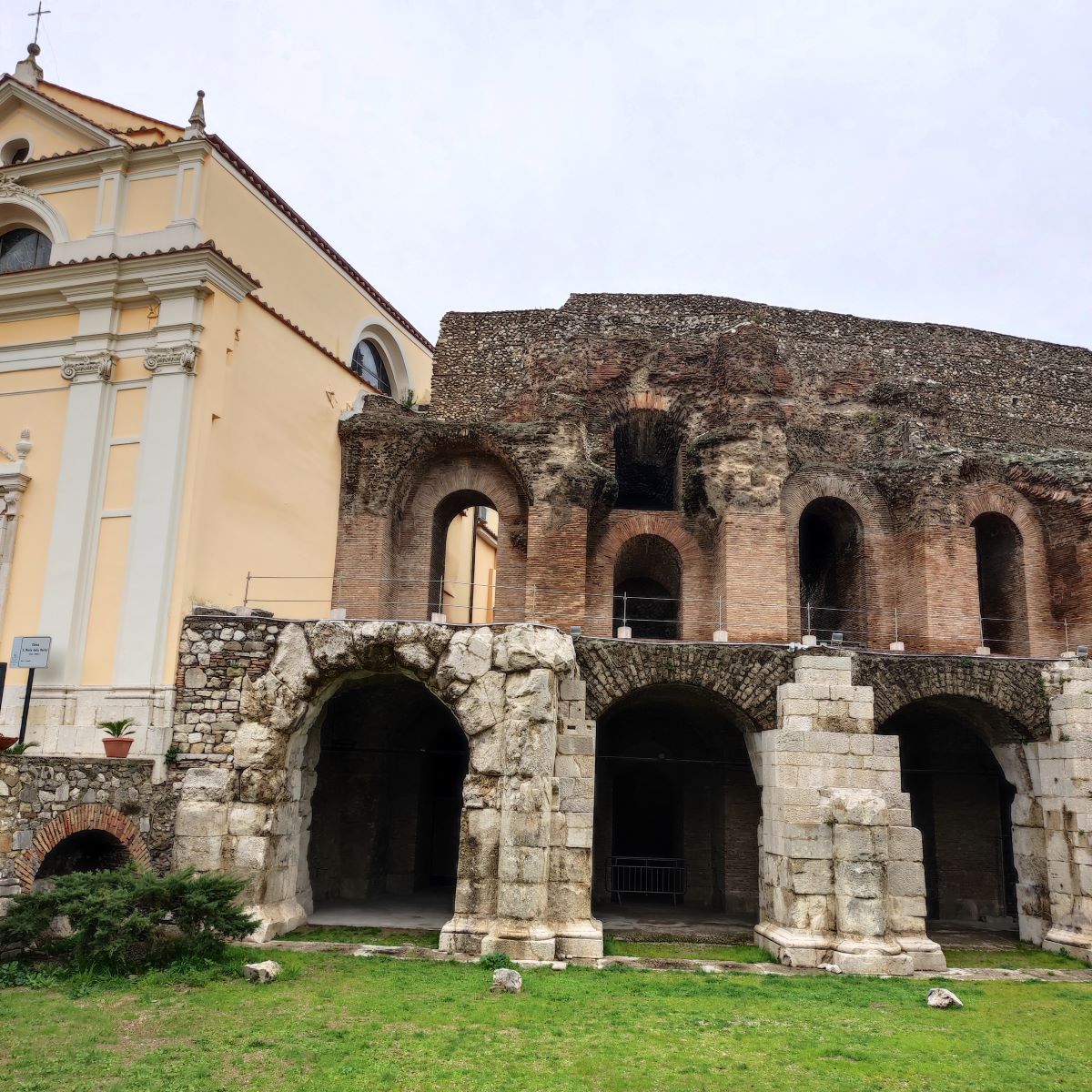 Il monumento che non mi aspettavo. Un teatro immenso, ben conservato e che doveva accogliere fino a 15mila spettatori: decisamente grande come edificio da spettacolo, considerato che ci troviamo nel centro del Sannio. Ma siamo in età Traianea, l’imperatore fa realizzare la via Traiana, un arco onorario viene eretto e Benevento decisamente deve godere di un grande periodo di prosperità, non foss’altro che da qui devono transitare le legioni in direzione di Brindisi per superare l’Adriatico e andare nei Balcani, in Dacia o nell’oriente mediterraneo.