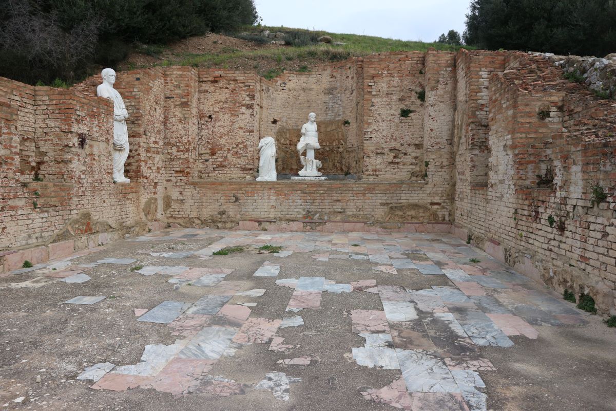 Se dal foro invece imbocchiamo la direzione dell’uscita, arriviamo al luogo in cui sorge ciò che resta di una basilica paleocristiana installata, come spesso accadeva nell’antichità, su impianti termali precedenti. In questo caso le terme di età adrianea, quindi di II secolo d.C., esaurita la loro funzione, sono convertite in luogo di culto cristiano.