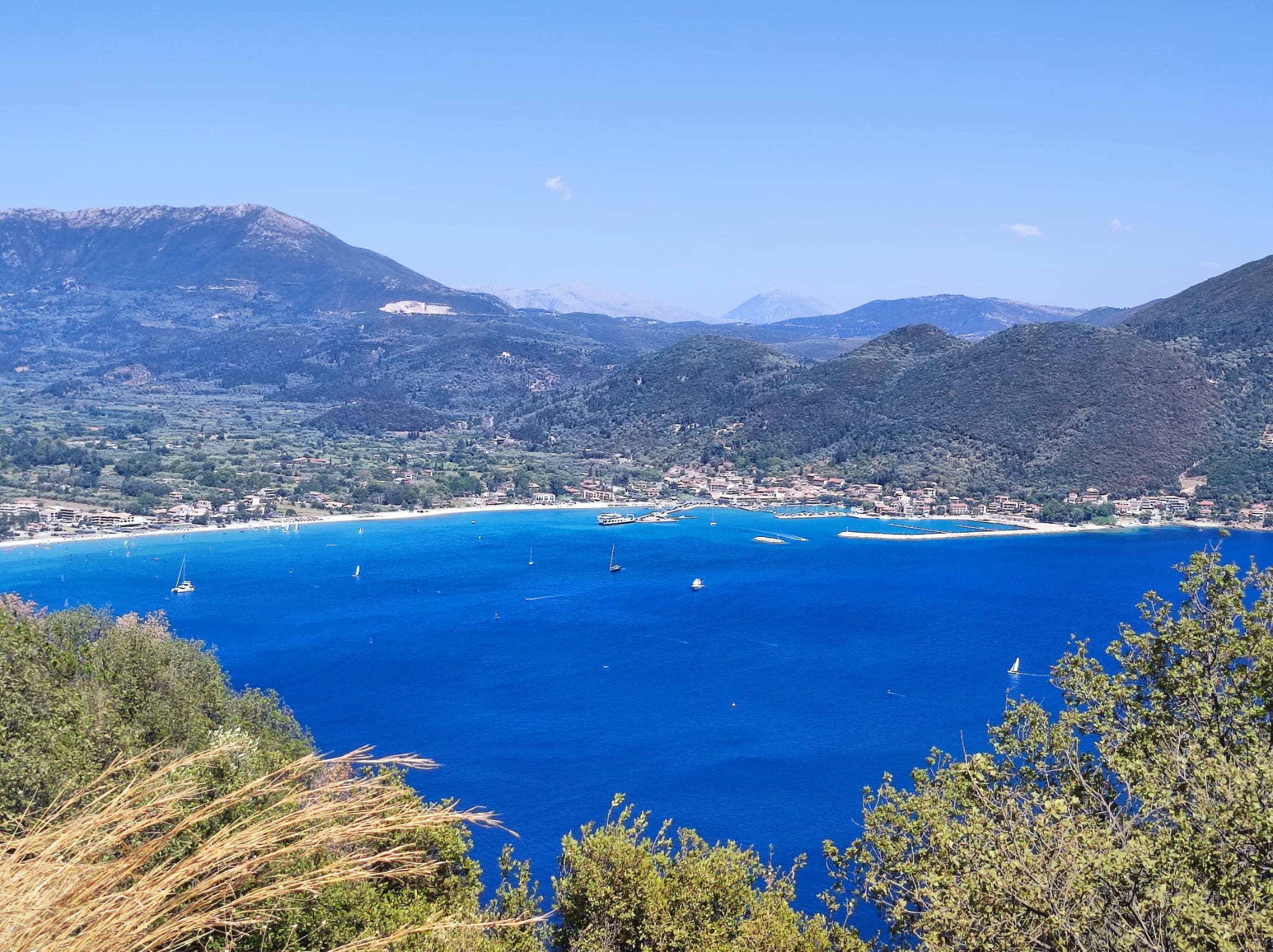 Altra località di mare che unisce alle spiagge anche un minimo di localini per pranzo e cena e un po’ i shopping è Vassiliki, a sud dell’Isola. Qui c’è un porticciolo, posto al centro di una baia tutto sommato ampia rispetto alle altre baie dell’isola, ma chiusa da promontori che si alzano velocissimi, proteggendo e chiudendo questo golfo e di fatto difendendolo. Finché non lo si vede dall’alto, però, non si capisce l’ampiezza della baia e la grandezza della natura: