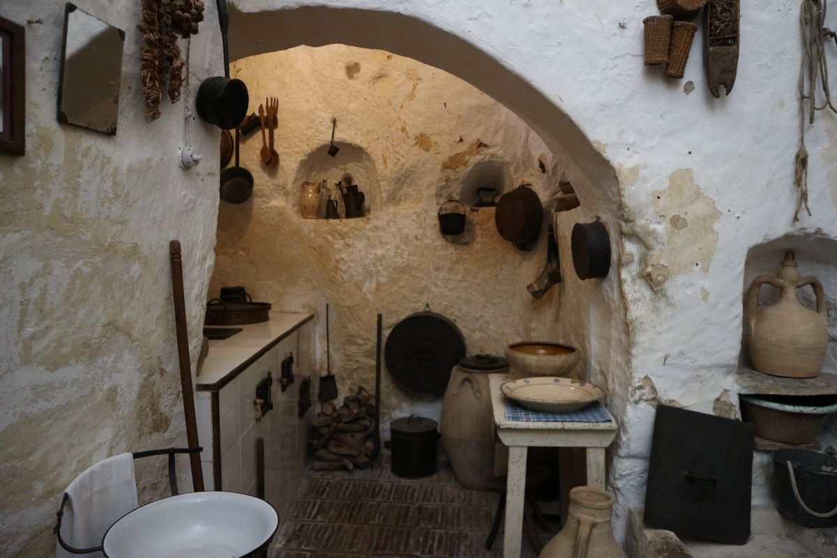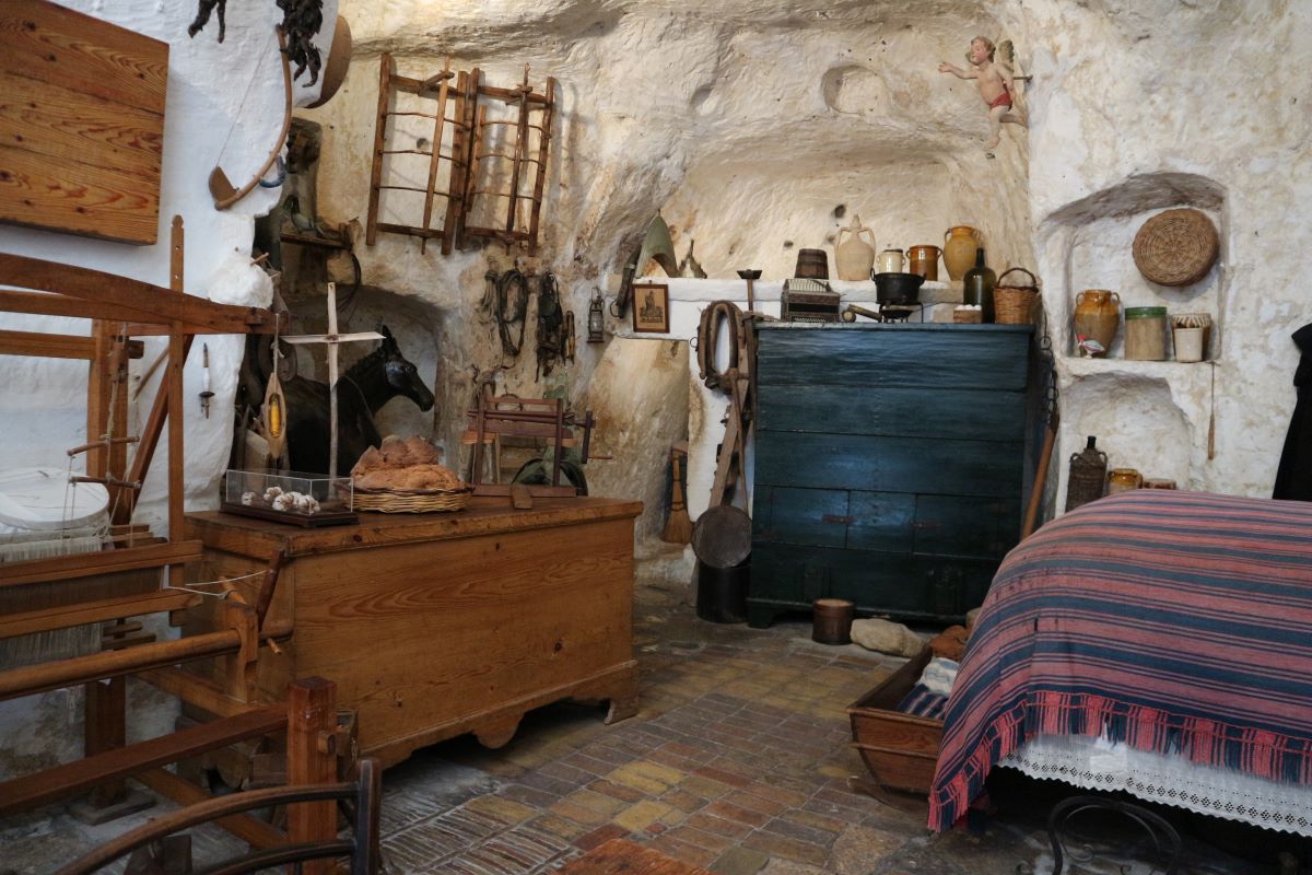 Il Sasso Caveoso è – passatemi il termine – il quartiere più selvaggio. O meglio, più antico e più “povero”, diversamente dal Sasso Barisano dove alle grotte si alternano palazzi anche di un certo valore architettonico. Nei Sassi sono stati musealizzati diversi luoghi, dalle chiese rupestri ad alcune case contadine. Ognuno ha un suo biglietto, perciò io ho scelto di aderire, nel Sasso Caveoso, a due circuiti: il biglietto da 5 € per la Storica Casa Grotta di Vico Solitario, la cui visita comprende un’abitazione rupestre arredata con il mobilio e gli utensili ancora in uso negli anni ’50 del Novecento, una neviera – grotta utilizzata per la conservazione del ghiaccio – e la chiesa rupestre di Sant’Agostino. L’altro circuito cui ho aderito è quello per la visita di 3 chiese: a 8 € si possono visitare le chiese di Santa Lucia alle Malve, Santa Maria de’ Idris e San Pietro Barisano, nel Sasso Barisano. Altre opzioni di biglietto consentono di vedere meno o più chiese, e in caso il prezzo diminuisce o aumenta.