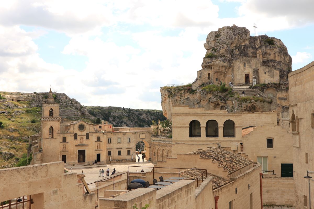 Sulla Civita, lo sperone più alto che divide i due Sassi, sorge in posizione simbolicamente dominante il complesso episcopale della Cattedrale di Santa Maria della Bruna e Sant’Eustachio.