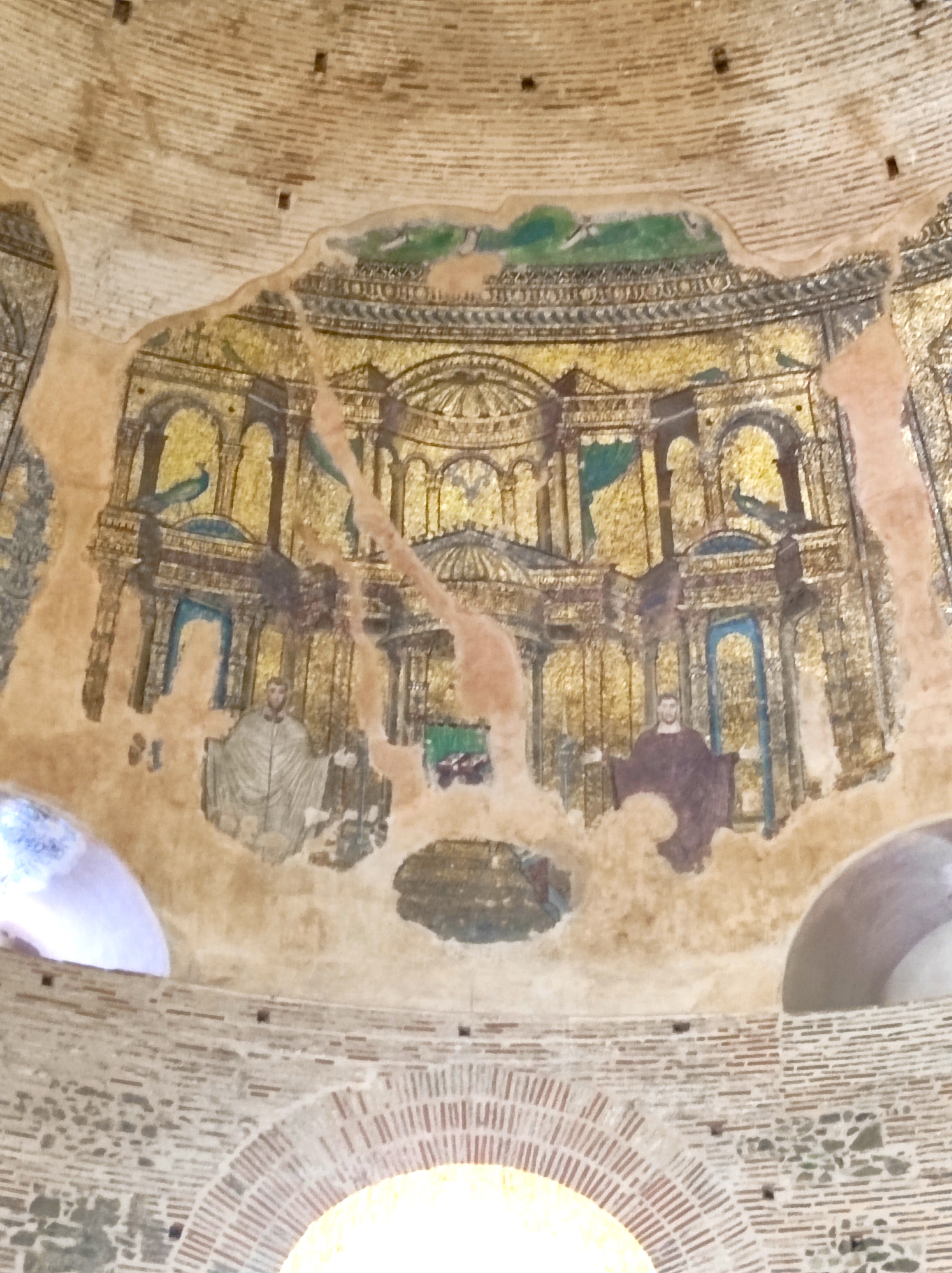 Risalendo da Kamara – Arco di Galerio – si arriva alla Rotunda. Si tratta di un edificio a pianta centrale e circolare che – sul modello dei mausolei dei grandi imperatori del passato, quali Augusto o Adriano – avrebbe dovuto essere la tomba/mausoleo di Galerio stesso. Di fatto fu riconvertito in chiesa cristiana sotto Teodosio I, colui che proprio a Tessalonica emanò l’editto che rese il Cristianesimo unica religione dell’impero, alla faccia di Galerio che invece a suo tempo aveva contribuito a reprimere il Cristianesimo durante la persecuzione di Diocleziano.