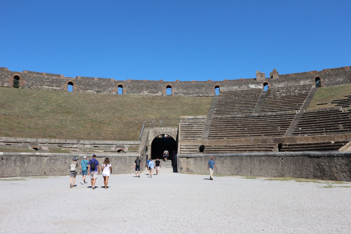 Tornando all’anfiteatro: era non grande, però accanto ad esso sorgeva una grande palestra gladiatoria, che oggi è lo spazio destinato alle mostre temporanee. E l’anfiteatro, famigerato nell’antichità per via di quella famosa rissa, oggi è famoso in tutto il mondo per via dello storico concerto dei Pink Floyd che qui si è svolto nel 1972: evento epocale ricordato con i brividi ancora oggi.