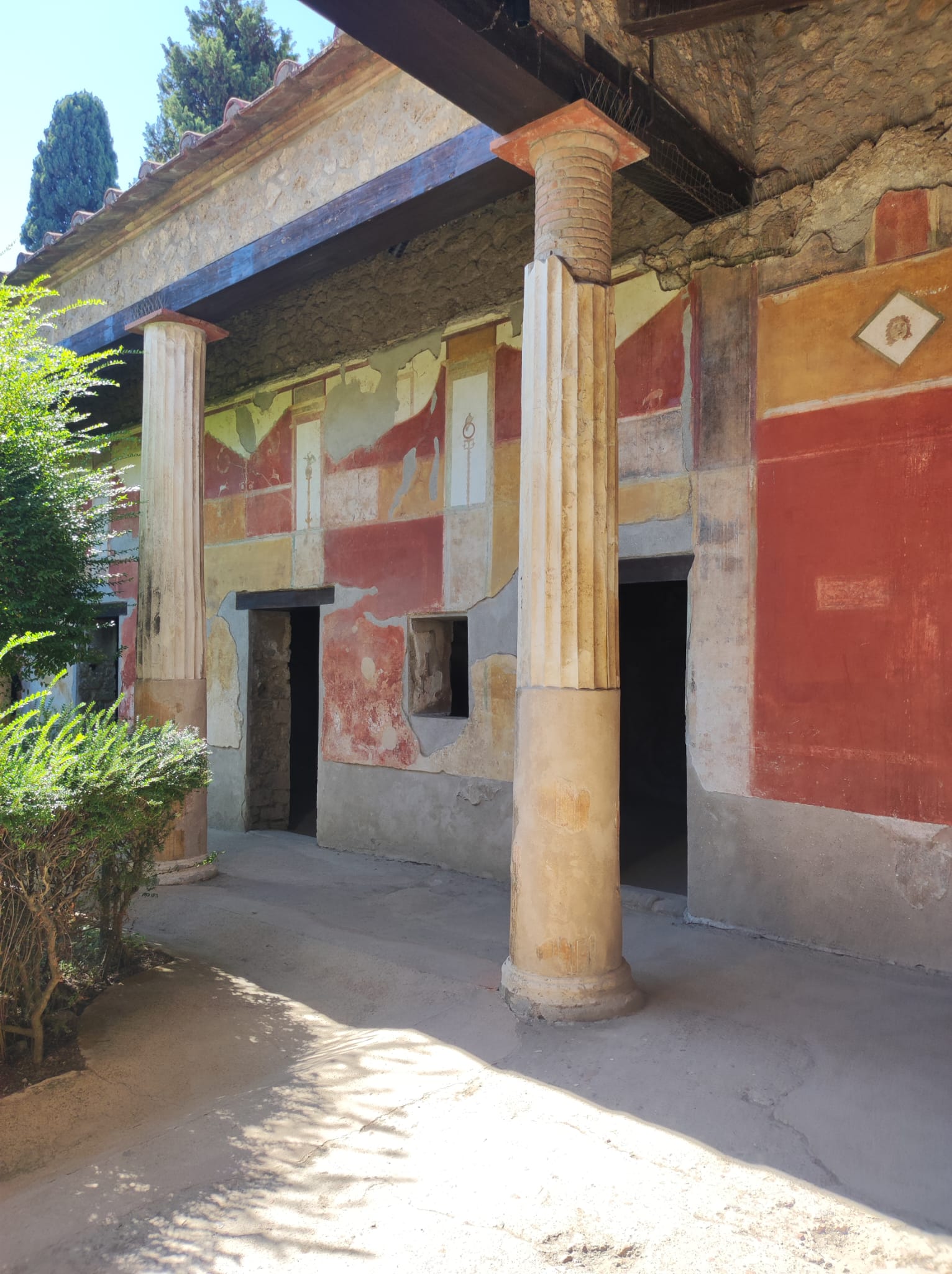 Qui entriamo in un vero e proprio cantiere. Visitiamo un isolato di Pompei che fu bombardato durante la II Guerra Mondiale dagli Alleati (Pompei fu bombardata dal fuoco Alleato, così come altri luoghi storici e monumentali in Italia, prima che i Monuments Men riuscissero a imporsi e a far capire che era un delitto distruggere un tale patrimonio…) e che circa 20 anni fa subì un ulteriore danno. Non è da tutti mostrare i propri cantieri al pubblico, ma a Pompei lo hanno fatto e in questo modo hanno fatto un piccolo miracolo: hanno trasformato tutti i visitatori in pericolosissimi umarell con le braccia tenute dietro la schiena, pronti a consigliare quale solvente usare per pulire, quale malta usare per le stuccature e quale strumento utilizzare per procedere con lo scavo… Al netto degli scherzi, questo settore degli Scavi è quello maggiormente attenzionato negli ultimi anni, tanto che qui Alberto Angela ha girato uno degli ultimi suoi speciali su Pompei e qui è stato girato un documentario (forse pure due o tre) dal National Geographic sugli scavi/restauri in corso. Perché a Pompei restauri e scavi vanno avanti di pari passo, com’è giusto che sia.