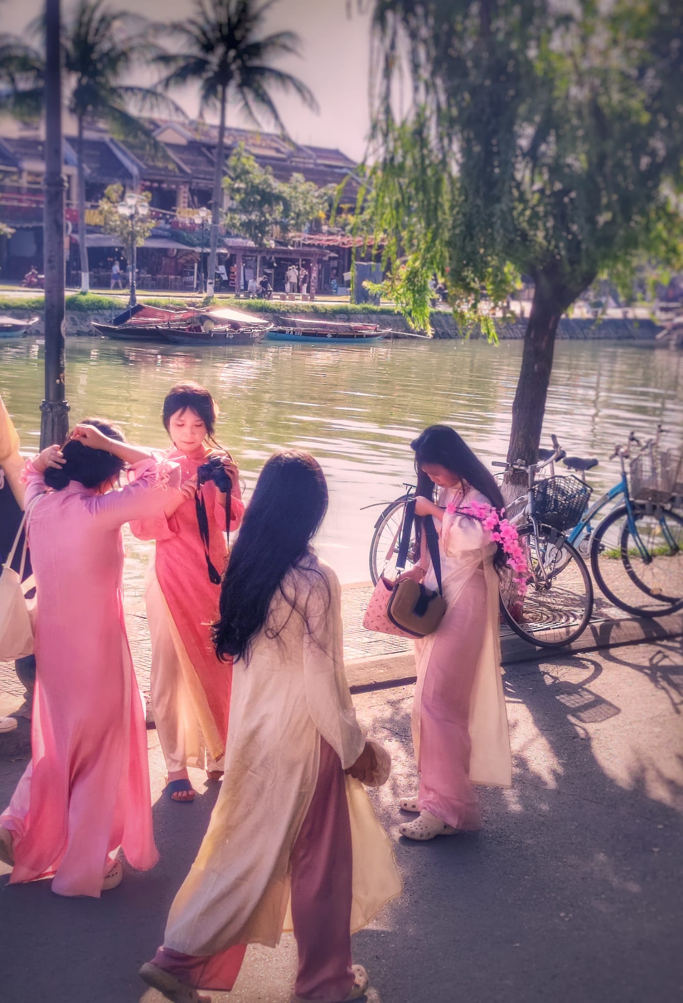 Ne abbiamo incontrate di bellissime, da nord a sud del Vietnam, tutte quasi timide e impacciate nel guardarsi intorno, ma poi estremamente sicure di sé nel mettersi in posa, nello sfidare la fotocamera sostenendo lo sguardo, accennando un sorriso, annusando un ramo di fiori.
