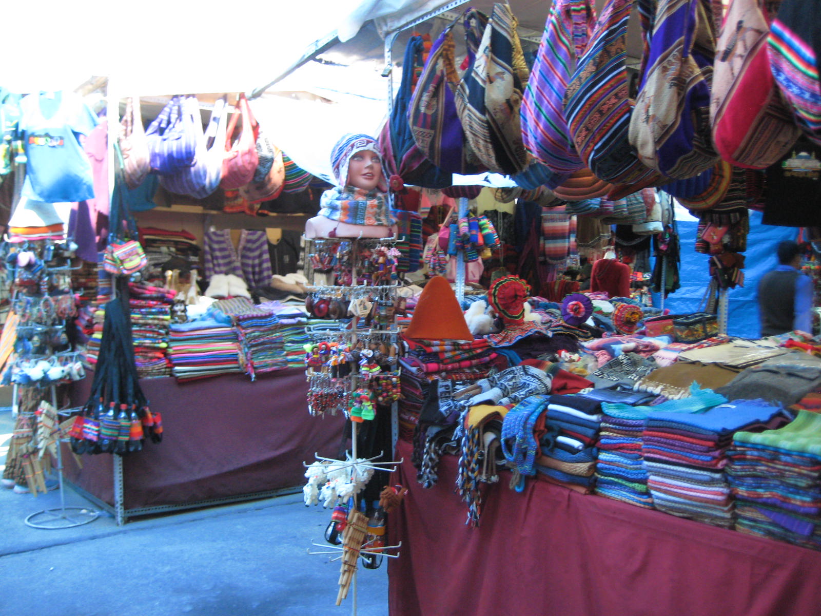 Il traffico, per le strette vie del centro, è tremendo: un’infinità di taxi che suonano il clacson in continuo, che non si fermano mai alle strisce pedonali, ma che inevitabilmente si piantano ogni volta che il primo della fila si ferma per far salire dei passeggeri. Andiamo in Plaza de Armas, che brulica di gente, ragazze e mamme con bambini per la maggior parte: la piazza, e in generale la città, è molto vissuta dai suoi abitanti. Passeggiando sotto i portici, però, è un continuo dire “no gracias” alle continue offerte di bus, tour, escursioni, taxi, bar, ristoranti: è tanto l’affanno verso il turista. Entriamo invece in un mercatino di artigianato al quale si accede dai portici dove invece non c’è anima viva. Ed è un piacere rovistare tra le bancarelle di tessuti tipici, di lana di alpaca e di statuette di ceramica. Pranziamo in un locale nella via dietro la cattedrale, il Mixto’s, che ha una terrazza da cui si gode la vista sui vulcani Chacani e El Misti, dalle cime innevate. Qui proviamo il cheviche, pesce crudo marinato principalmente in abbondante limone.