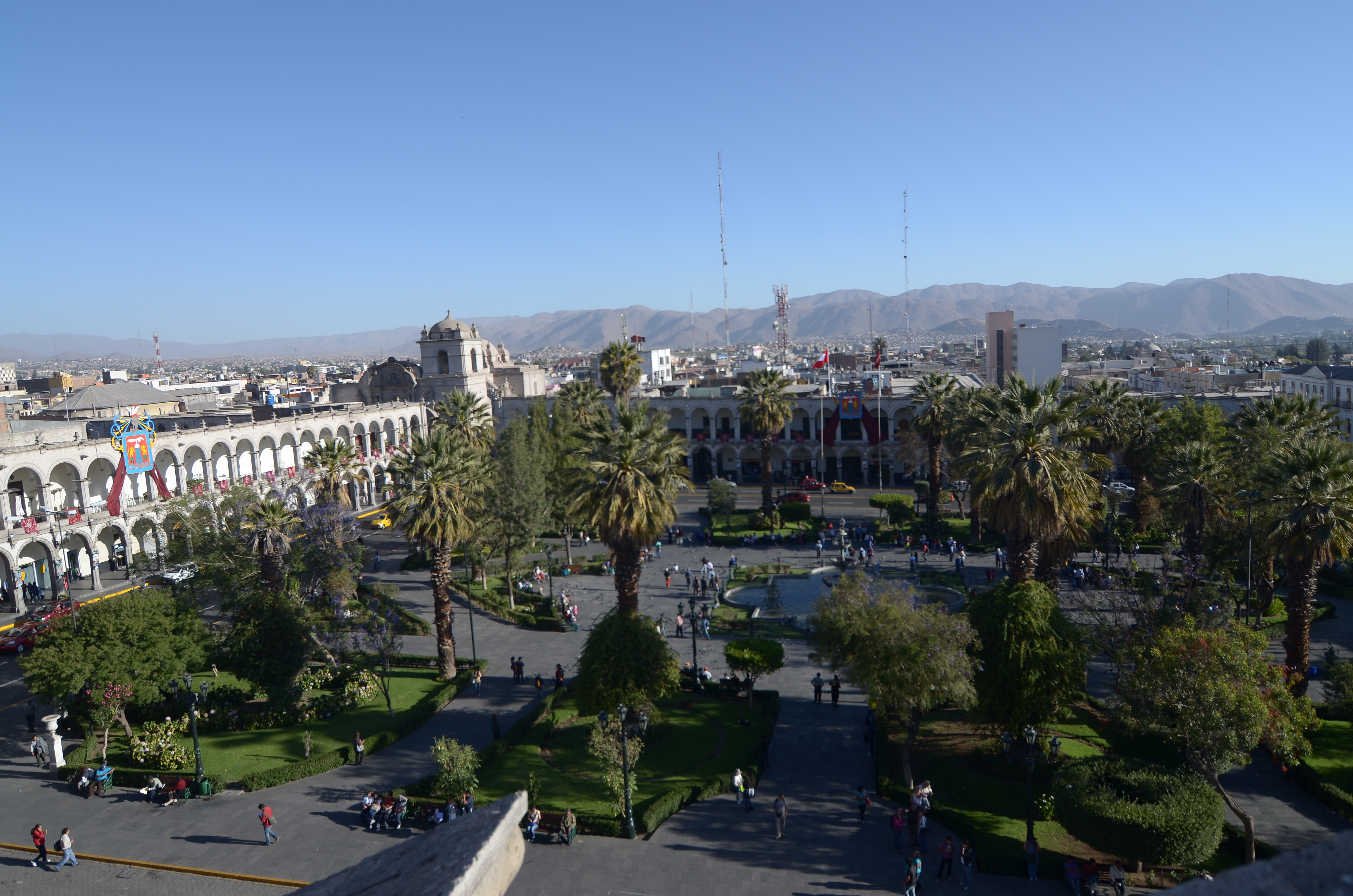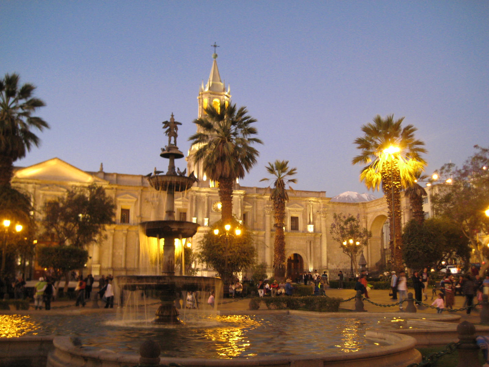 Arriviamo ad Arequipa quando ormai sta calando la notte. Mentre l’aereo si abbassa vediamo le luci della città che si stende alle pendici dei suoi vulcani: una lingua arancione nel buio, mentre ancora si stagliano nella penombra le cime dei vulcani innevati. La vista ha un che di magico.
