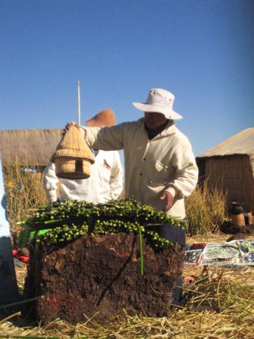 La totora è commestibile, ne assaggiamo un pezzettino: sa vagamente di cetriolo, ma ha la consistenza di un marshmallow. Le isole galleggianti sono tuttora abitate dagli uros, che vivono di caccia, pesca e… turismo. Tutta la gita e l’arrivo sull’isola ha il sapore di una messinscena apposta per il turista, tant’è che veniamo accompagnati nelle capanne delle singole famiglie e qui si svela l’arcano: compra turista, compra a caro prezzo oggetti fabbricati da noi. Viene il dubbio che sia solo un’attrazione turistica, che non ci vivano realmente. Quale che sia la verità, qui è portato alle estreme conseguenze il rapporto col turista. È un incontro con la popolazione locale totalmente falsato.