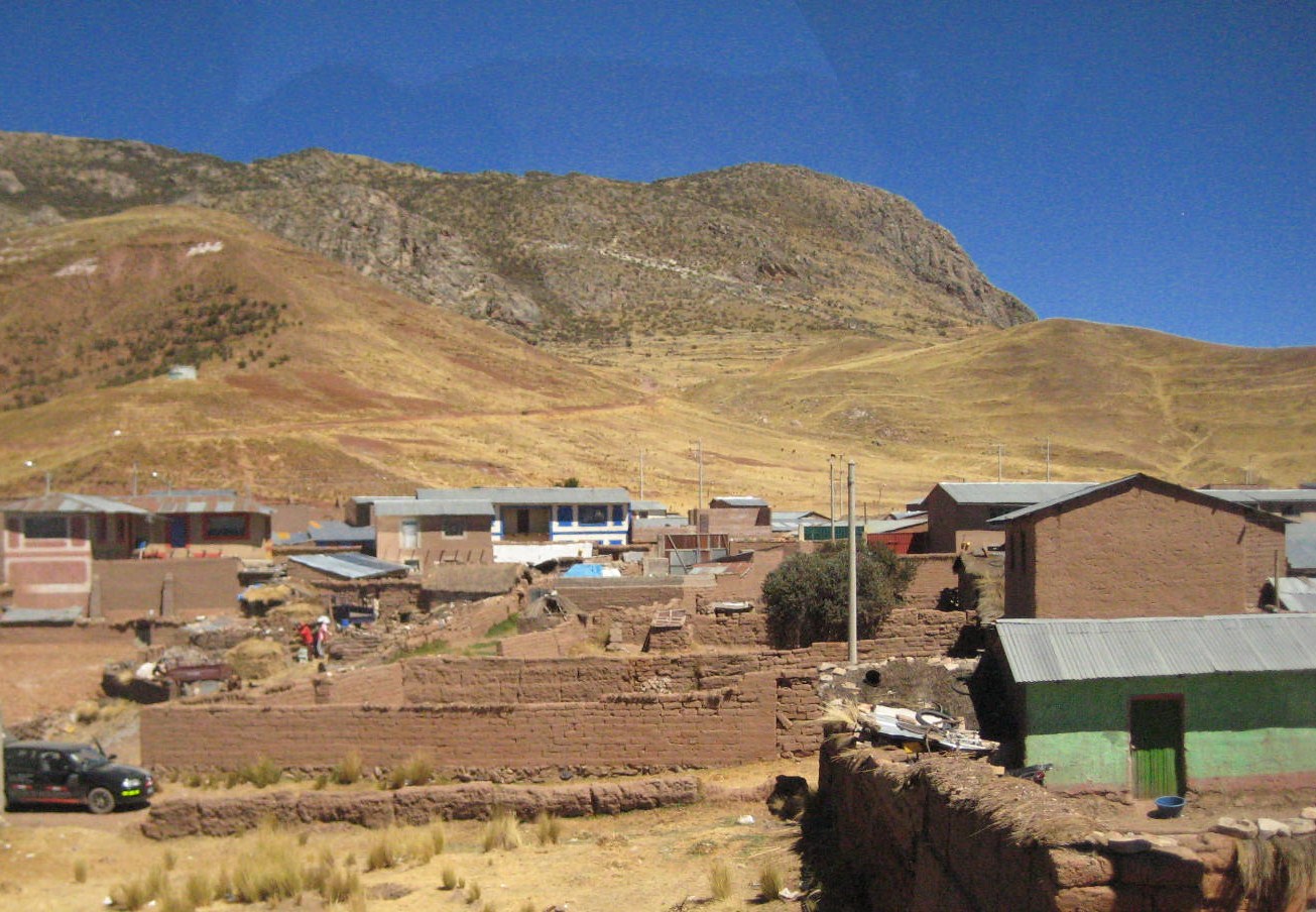 L’autobus per Puno parte dal terrapuerto di Arequipa alle 8.30. Attraversiamo un territorio montagnoso molto spoglio e pressoché disabitato, eccetto qualche minuscolo villaggio qua e là lungo la strada. Nel primo tratto la vegetazione è caratterizzata dalla presenza di grossi cereus, piante grasse alte e snelle che vivacizzano un territorio altrimenti brullo. Man mano che si sale di altitudine i cactus scompaiono, e rimangono solo sterpaglie, erba gialla e radi arbusti. Nel frattempo però compaiono le greggi di alpaca accompagnate dai loro pastori. Prima di arrivare a Puno l’autobus passa da Juliaca, città industriale del Perù che ci appare polverosa e incasinata.