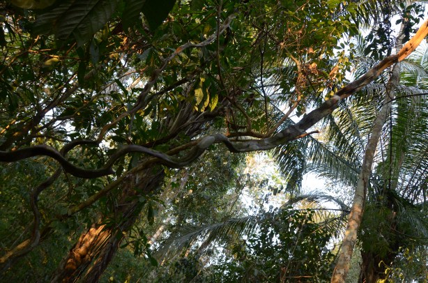 C’è poi l’albero della giustizia, il cui tronco è scavato e percorso da formiche che ne hanno fatto il loro formicaio; l’albero ha questo nome perché ad esso i nativi legano i condannati, dopodiché battono sul tronco per far uscire le formiche che assalgono il condannato e a furia di pizzichi e di morsi gli procurano infezioni portandolo anche alla morte, lenta, estenuante e atroce. Queste formiche, inconsapevoli carnefici, si chiamano Tangarana. E a proposito di formiche, vediamo quella che probabilmente è la formica più grande del mondo, davvero impressionante, lunga più di 2 cm (che se ti pizzica te lo ricordi…). E per restare in tema, scopriamo che qui le termiti fanno il loro termitaio sugli alberi, creando canali coperti che si possono rompere per catturare un po’ di termiti e barbaramente uccidersele tra le mani per ricavare un potente repellente antizanzare dall’aroma piacevolmente legnoso.